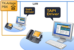 TAPI ist eine standardisierte Telefonie-Schnittstelle unter Microsoft Windows. Viele Hersteller bieten für Ihre Telefone oder TK-Anlagen entsprechende TAPI-Treiber an.
