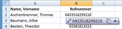 Sie klicken einfach mit der mittleren Maustaste auf eine Rufnummer in einer E-Mail, einer Webseite oder einer Excel-Tabelle. Ein kleines Popup-Wähl-Menü zeigt die erkannte Rufnummer an und ein zweiter Mausklick startet den Anruf. Eine weitere Möglichkeit ist das direkte Wählen einer markierten Rufnummer per Hotkey (z.B. über die Taste "Pause").