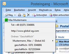 Dialing from within other applicationsYou simply click with the middle mouse button on a phone number in an e-mail, a web page or an Excel spreadsheet. A small pop-up dialing menu will display the recognized number and a second mouse click will start the call. Another possibility is the direct dialing of a marked telephone number by hotkey (for example, via the "Pause" key).