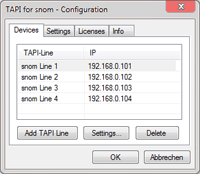 Installation and Configuration▶ Installation and Configuration You can open the configuration dialog of the TAPI driver: [Control Panel > Phone and Modem > Advanced]. Here you should see the driver "xtelsio TAPI for snom". Supported operating systems (32-bit and 64-bit):Windows 7/8/10/11, Vista, Windows Server 20xx.Hint: xtelsio CTI Client already contains a TAPI-Connector for snom. If you use the Client, you don't need an extra TAPI driver for your snom phone. snom is a registered trademark of snom Technology AG.