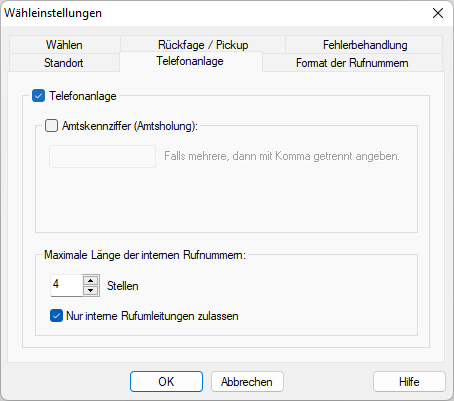 This is relevant if you execute TAPI dialing actions in other applications (via the "CTI Client TAPI Connector" or via "Assisted Telephony").Outside line access when dialing from other TAPI-enabled applications (e.g. CRM application)