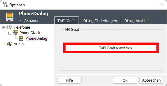 Phone_203 After selecting the TAPI device, the dial settings are still to configure.