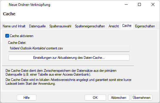 Contact information will be cached locally, so they do not need to be re-read by Outlook at each application start. In Outlook changed or new created contacts are automatically transferred later.