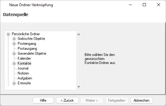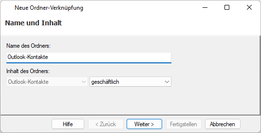 After click on [Next >] the contacts from this folder are read.Hints: Only one folder can be selected a time. Subfolders are not automatically imported. If you want to include multiple folders, the entire process is to be executed per folder.